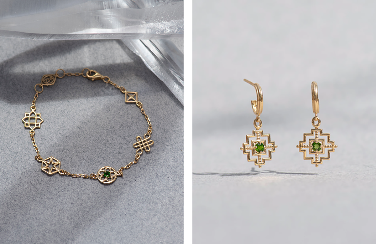 Chrome diopside is said to be connected to the heart chakra and this couldn’t be a better representation of our brand’s heart and core, as the stone enhances one’s love and commitment towards their belief.