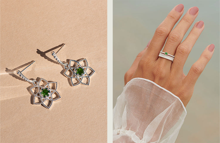 Discover online or in-store our latest designs that feature the rich green gemstone that is Chrome Diopside.