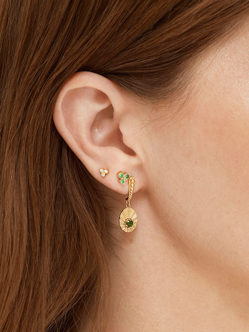 With Morgan travelling the globe to find all our beautiful natural gemstones, we are proud to say that our chrome diopside is sustainably sourced from Siberia, Russia and our team meticulously makes pairs of each stone to try to match the colour and tone as best as possible as since all the gemstones we use are natural, it is, therefore, unavoidable but also unique so that each stone is different to the next.