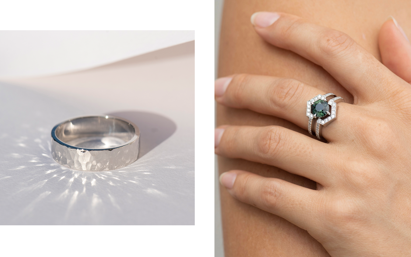 At Zoë & Morgan, we craft platinum pieces using high-content platinum of at least 95% purity. Its hypoallergenic properties make it a safe and comfortable metal for daily wear, ensuring you can cherish your platinum jewellery for a lifetime.