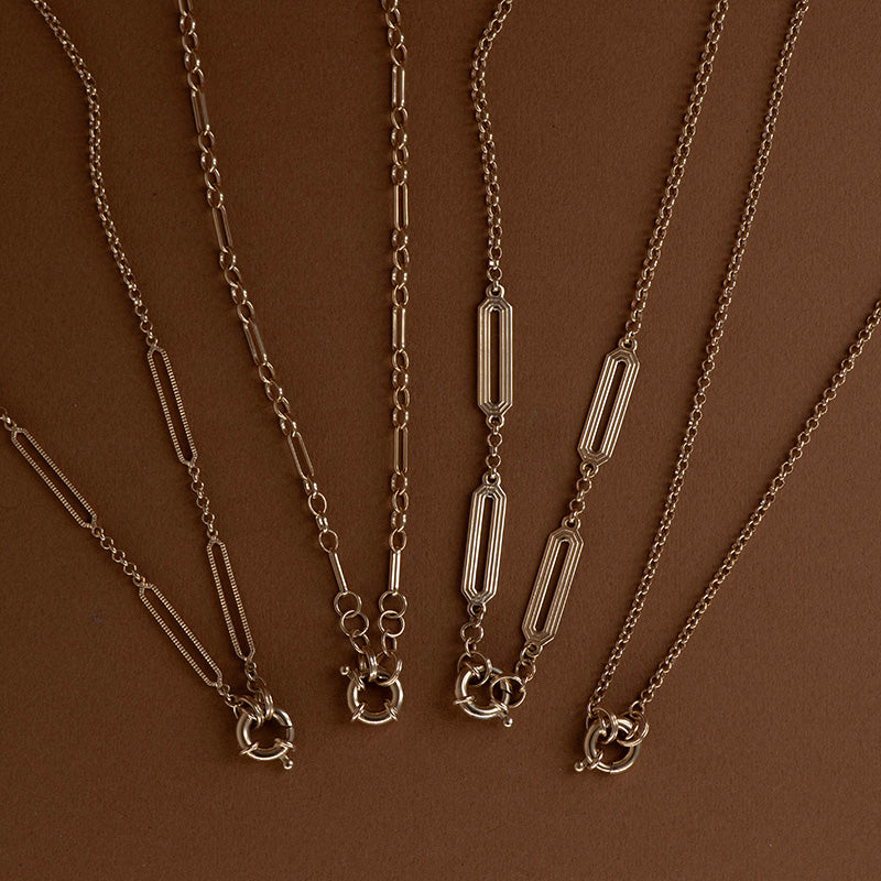 Our bolt ring chains are a perfect foundational piece to begin your jewellery collection. With their unique bolt ring clasp that doubles as a charm holder, these necklaces can be worn alone for a classic look or add pendants from our charm bar to personalise your story.
