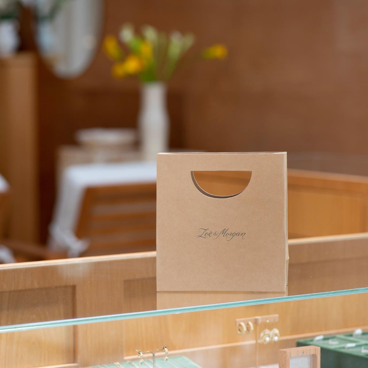 Packaging is important to us, specifically looking at the development of our jewellery boxes with design, luxury and the environment in mind. Our jewellery boxes and bags are made from recycled materials.