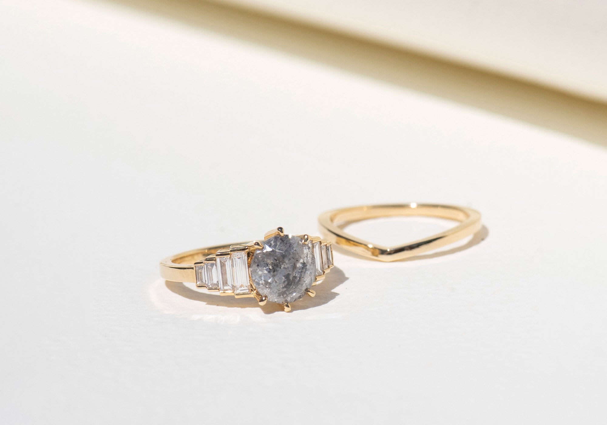 Our engagement and wedding collections, and our bespoke pieces are made locally. The gold we use is high quality, refined and 97% recycled.