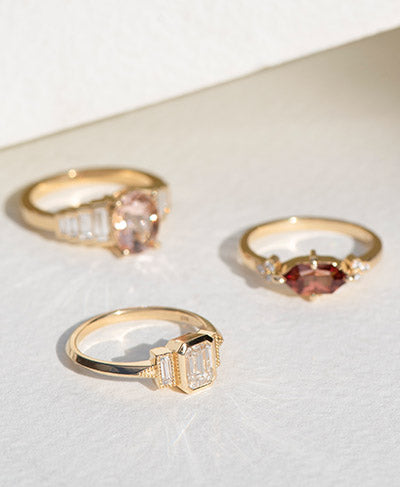 Our collection has evolved as the definition of love is personal to each of us. It blossomed from our signature art deco style, an endless love of precious stones set in high quality metals, with each unique stone reflecting your unique journey.