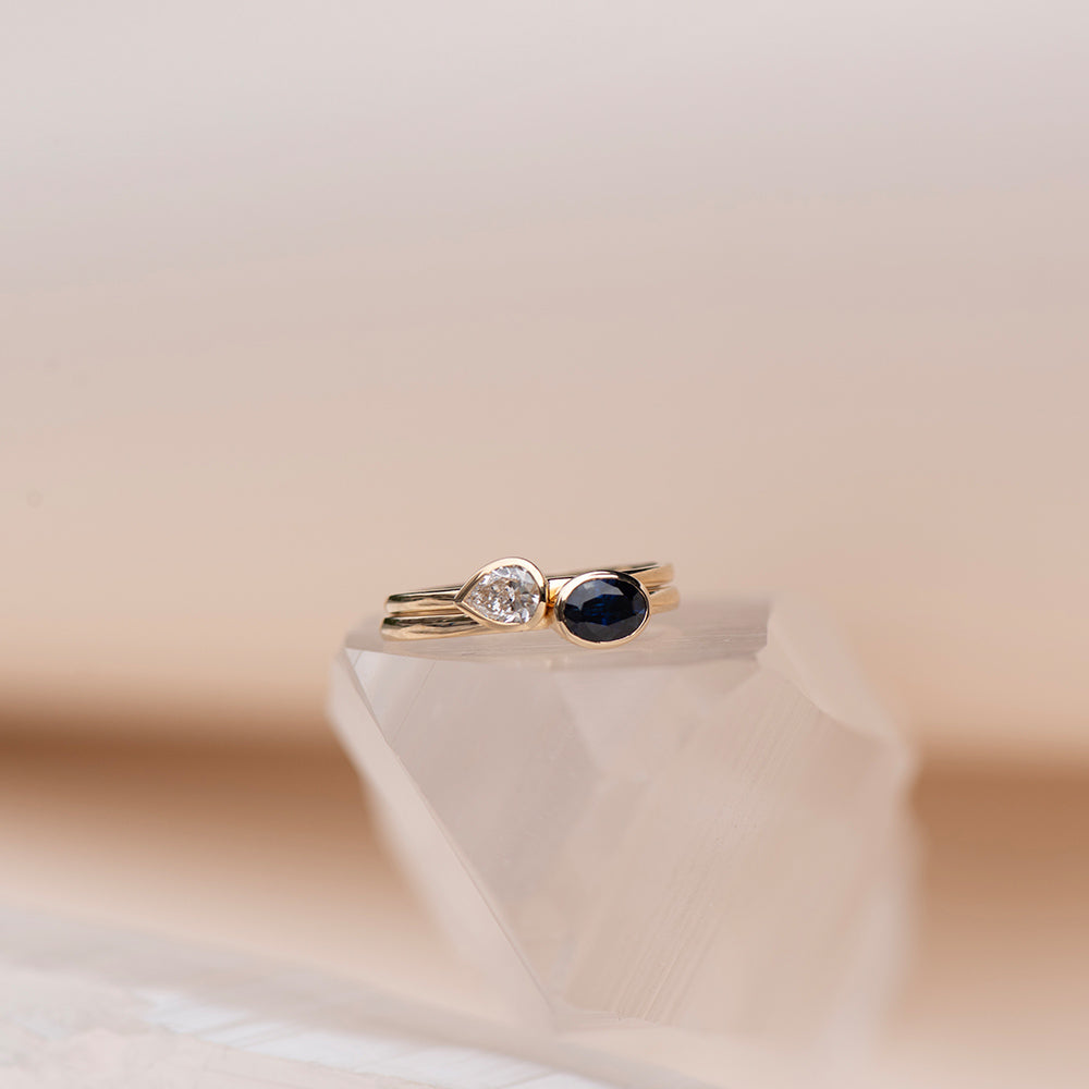 A stunning trio of baguette, round and pear lab grown Diamonds, beautifully set in a sleek cascading design. This modern take on classic elegance adds a touch of refined glamour to any occasion.