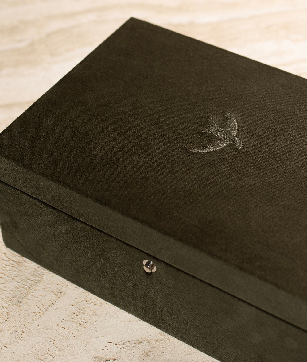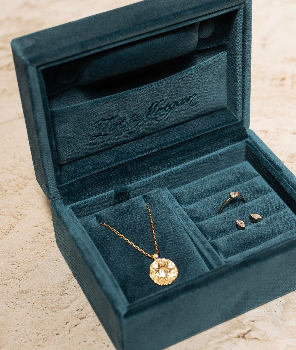 Meet our jewellery boxes. Consciously crafted from luxurious Mallard velvet.