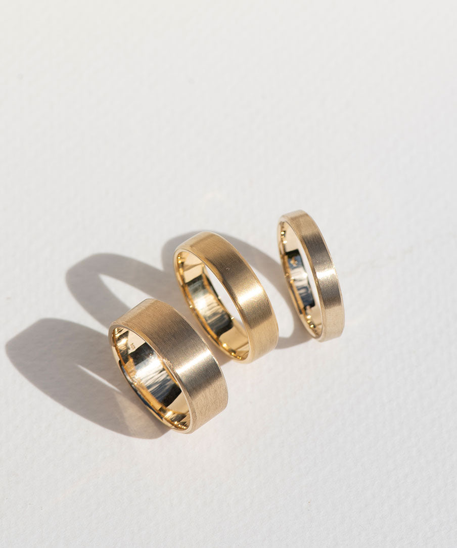 The Silas band features a brushed matte finish on its surface, with beveled polished edges that extend into the interior of the band.